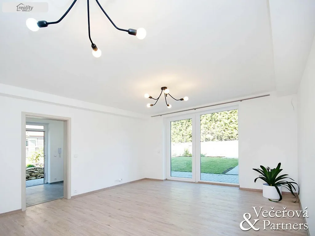 Novostavba rodinného domu je třípodlažní. V přízemí se nachází prostorné zádveří, obývací pokoj spojený s kuchyní, která je plně vybavená značkovými spotřebiči, pokoj pro hosty a koupelna s WC. Z obývacího pokoje je vstup na prostornou terasu orientovanou na jih. Po schodišti se dostanete do patra, kde jsou 3 ložnice, samostatné WC a koupelna se sprchou a vanou.