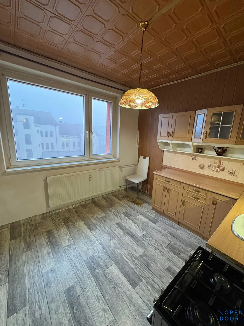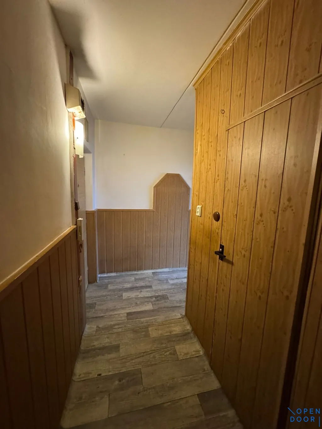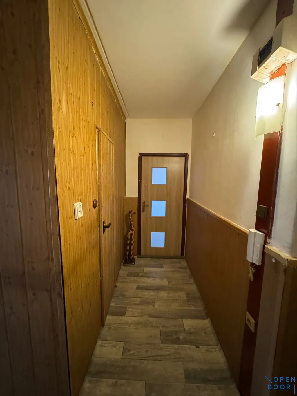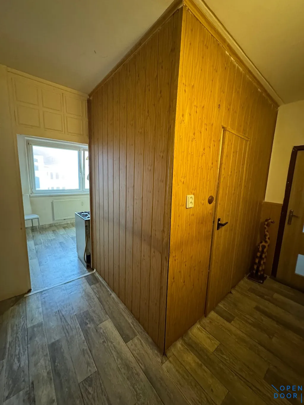 Byt je v původním stavu s umakartovým jádrem a je vhodný k úpravám dle vlastních potřeb nájemce. Dispozice zahrnuje vstupní chodbu s přístupem do všech místností. Kuchyně je vybavena kuchyňskou linkou ve tvaru „L“, plynovým sporákem a nabízí také prostor pro jídelní stůl. Dále je k dispozici jedna samostatná místnost, využitelná jako obývací pokoj nebo ložnice. Koupelna je spojena s toaletou a je vybavena malou vanou a umyvadlem.
