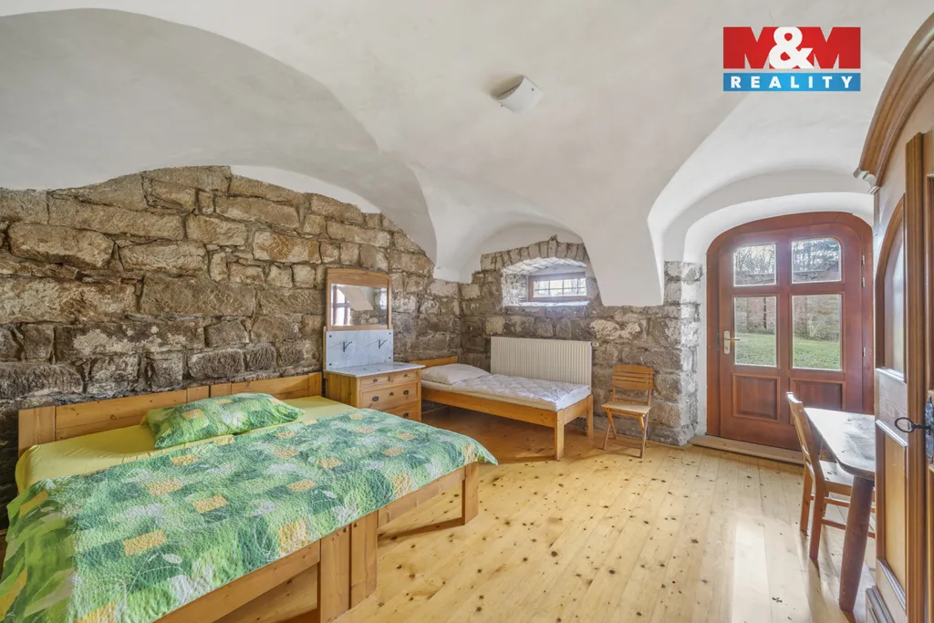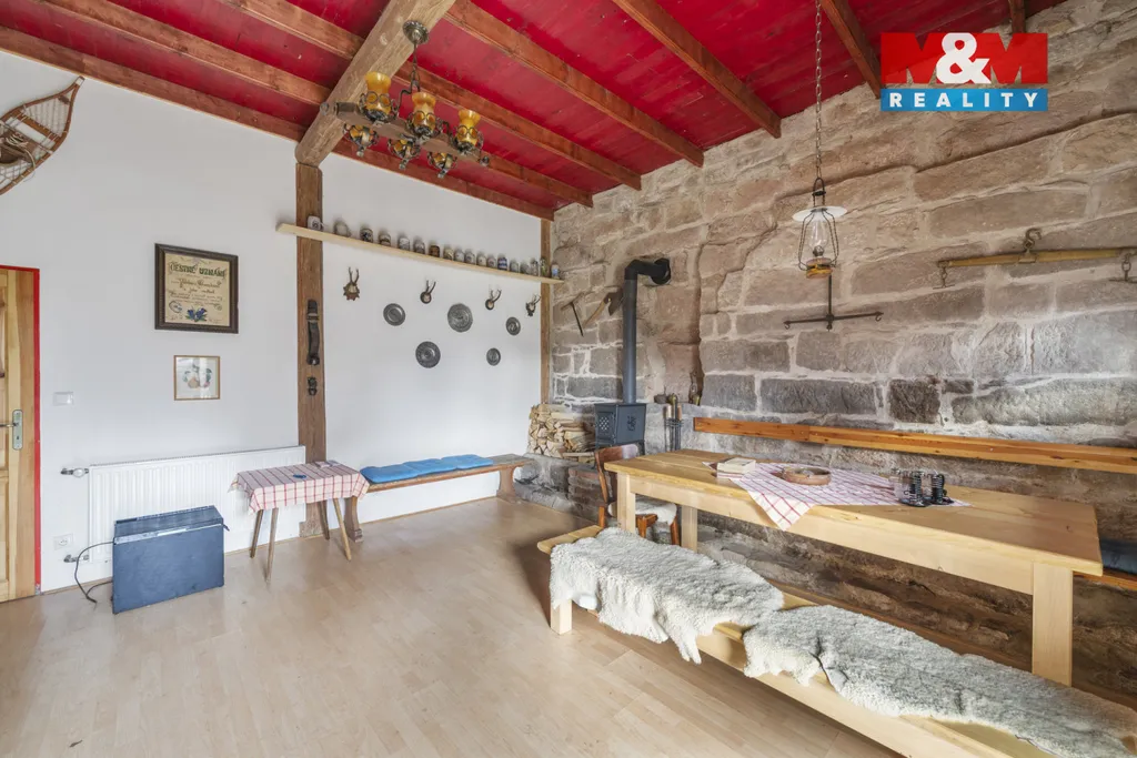 Nabízíme k prodeji jedinečný rodinný dům s možností provozování penzionu, situovaný na polosamotě v malebné části obce Vernéřovice. Nemovitost je ideální pro ty, kteří hledají klid a soukromí. Dům má smíšenou konstrukci a je ve velmi dobrém stavu. Disponuje jedním podzemním a dvěma nadzemními podlažími, celkem šesti prostornými místnostmi na užitné ploše 280 m². K vytápění slouží podlahové topení, tepelné čerpadlo a krbová kamna, zajišťující příjemnou atmosféru a úsporu energií. Součástí je také studna a rozlehlý pozemek o ploše 1499 m², který skýtá dostatek prostoru pro relaxaci či další využití. Tato nemovitost je ideální investicí pro ubytovací zařízení nebo jako rodinné sídlo.