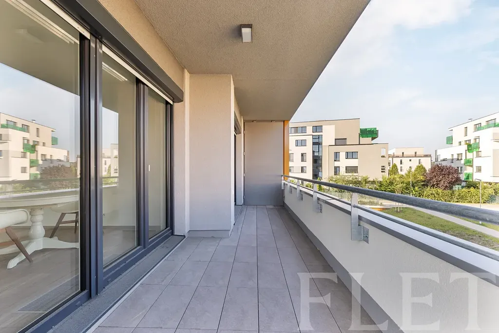 Je ve vašem hledáčku prostorný byt s dostatkem denního světla a velkou lodžií? Je vaší podmínkou garážové stání? Pak právě pro vás je tato nabídka v podobě pronájmu bytu 2+kk o krásné výměře 65 m2 v novostavbě v pražských Letňanech. Tento nestandardně prostorný byt s lodžií o velikosti 23 m2 kolem celého bytu vás zajisté nadchne. Velký obývací pokoj vám poskytne dostatek místa na jídelní kout a obývací část, kam se nemusíte bát umísit i velkou rohovou sedačku. Místo ideální pro rodinné oslavy či posezení s přáteli. Krásná designová kuchyně je vybavena zabudovanou myčkou nádobí i elektrickou troubou. Ložnice je oddělená, můžete se sem však také dostat přes prostornou rohovou lodžii. Koupelna se sprchovým koutem je společná s toaletou. Úložné prostory zajistí jak praktická komora přímo v bytě, tak velká sklepní kóje (5 m2).