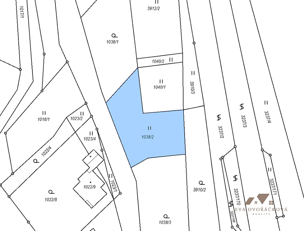 parcela č. 1038/2 – 813 m², dle územního plánu určena pro individuální bydlení. Nabízí tak možnost výstavby rodinného domu dle vlastních představ.