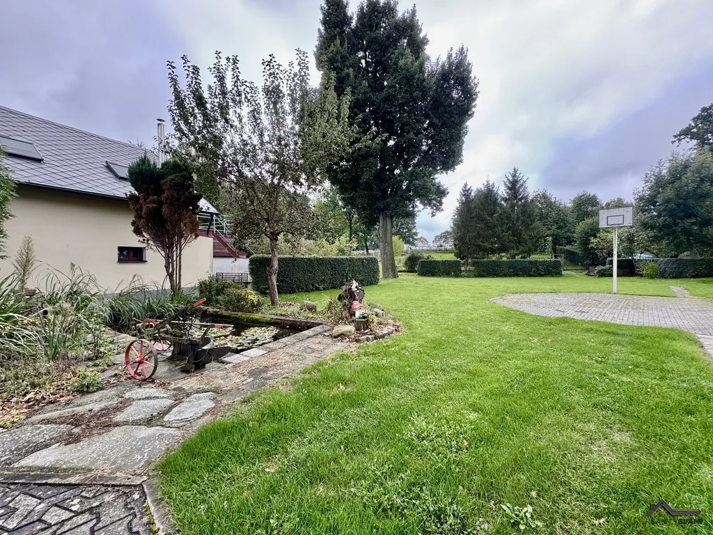 Jedná se o velký rodinný dům, stavěný v roce 1918, který procházel napříč lety úpravami a modernizací, a to postupně až do roku 2020. Celkově se jedná o bydlení, kde jednu část tvoří dům o velikosti 4+1 se dvěma koupelnami a dále nedodělaný byt o velikosti 3+1 s koupelnou a WC. To ovšem není vše, neboť díky rozsahu nemovitosti je zde ještě velká zimní zahrada s bazénem a přilehlou saunou, další větší kuchyně, ke které náleží dvě velké společenské místnosti, vybavené kulečníkem, pingpongovým stolem a k nim je i připojena menší skladovací místnost a velká terasa, na které je umístěna zánovní vířivá vana. Opět to ale není vše, jelikož se dále dostaneme do samostatné garáže, která je připojena na dům a další garáže, kde se díky schodům dostanete do patra, nachází se tu i půdní prostor kde je možno vybudovat další bydlení.
