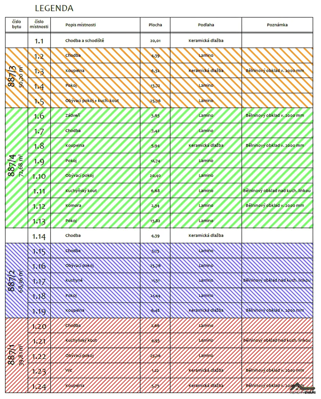 1NP – 3+kk, 72,68 m² + sklep 8,20 m² + balkon/terasa 5,95m², cena 4.730.000,-Kč