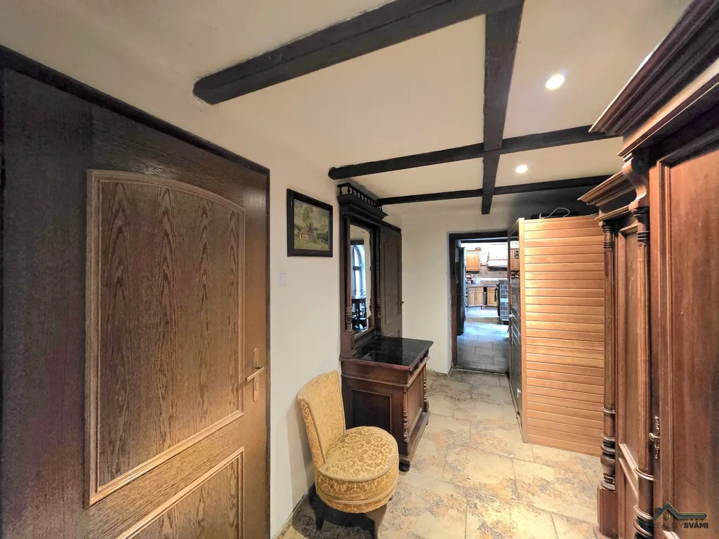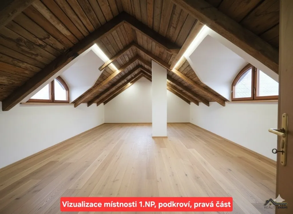 Krb s rozvody (rozvod aktuálně odpojen), obytné podkroví (3 pokoje v původním stavu), sklep cca 3×5 m.