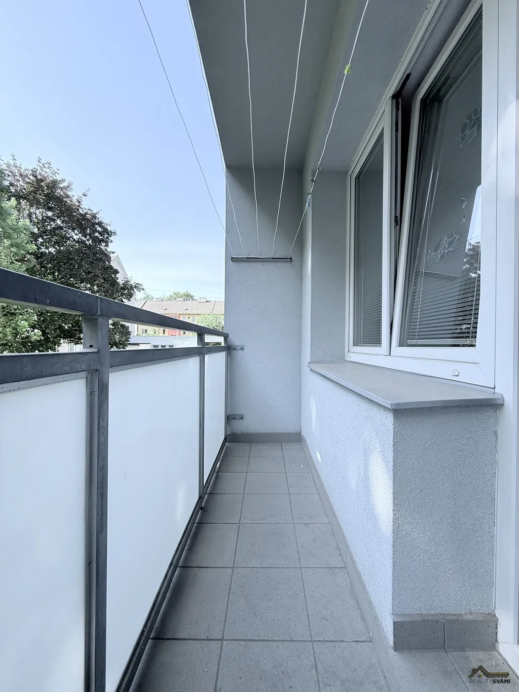K bytu patří balkón, který je umístěn na stranu do zeleně, takže vhodný jak pro odpočinek nebo odpolední relaxaci, což je dalším bonusem tohoto bytu. Součásti je i sklepní kóje