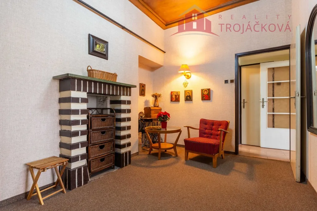 Dispozice bytu je velmi praktická. Po vstupu do bytu vejdeme do prostorné chodby (10,7 m2), kde se nachází krb, který není využíván. Z chodby je také vstup do obývacího pokoje, který je průchozí s ložnicí, vstup do dětského pokoje a kuchyně. Z pokoje a kuchyně se vchází na balkón, který je průchozí a je částečně zasklený a je orientovaný do vnitrobloku. Součástí kuchyně je starší kuch.linka, plyn.sporák a lednice. Z kuchyně je také vstup do komory a spíže. Uprostřed bytu je koupelna s vanou, do které se vchází, jak z ložnice, tak z předsíně. WC je samostatné. Byt je vytápěný vlastním plynovým kotlem. Stejně je řešen i ohřev vody. Podlahová krytina jsou parkety a na nich koberce a dlažba. V bytě byla provedena výměna oken za plastová a okna do ulice mají elektrické rolety. Před 10 lety proběhla rekonstrukce koupelny včetně rozvodů vody. V domě je rozvod TV a internetu. K bytu náleží velký sklep a komora na patře.