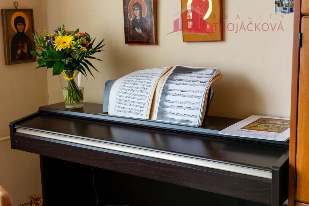 Dispozice bytu je velmi praktická. Po vstupu do bytu vejdeme do prostorné předsíně/haly/ s originálním kazetovým stropem. Z předsíně je samostatný vstup do obývacího pokoje a dětského pokoje s balkonem. Ložnice je dostupná, jak z obývacího pokoje, tak z předsíně. Na předsíň navazuje malá předsíňka, ze které je vstup do koupelny s vanou, do samostatného WC a do kuchyně. Z dětského pokoje a kuchyně se vchází na balkon, který je průchozí a je orientovaný do vnitrobloku. Součástí kuchyně je starší kuch.linka, plyn.sporák a lednice. Z kuchyně je také vstup do komory a spíže. Byt je vytápěný vlastním plynovým kotlem. Stejně je řešen i ohřev vody. Podlahová krytina jsou parkety a na nich koberce. V kuchyni a v koupelně dlažba. V bytě byla provedena výměna oken za plastová a okna do ulice mají elektrické rolety. Před 10 lety proběhla rekonstrukce koupelny včetně rozvodů vody. V domě je rozvod TV a internetu. K bytu náleží velký sklep a komora na patře.