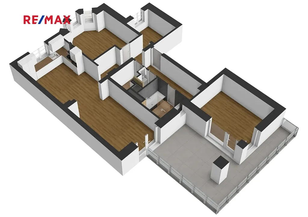 Nově rekonstruovaný byt s dispozicí 4+kk o výměře cca 100 m2 a nadstandardní terasou cca 26 m2 se nachází v 1. patře nově rekonstruovaného domu v Plzni na Slovanské ulici.