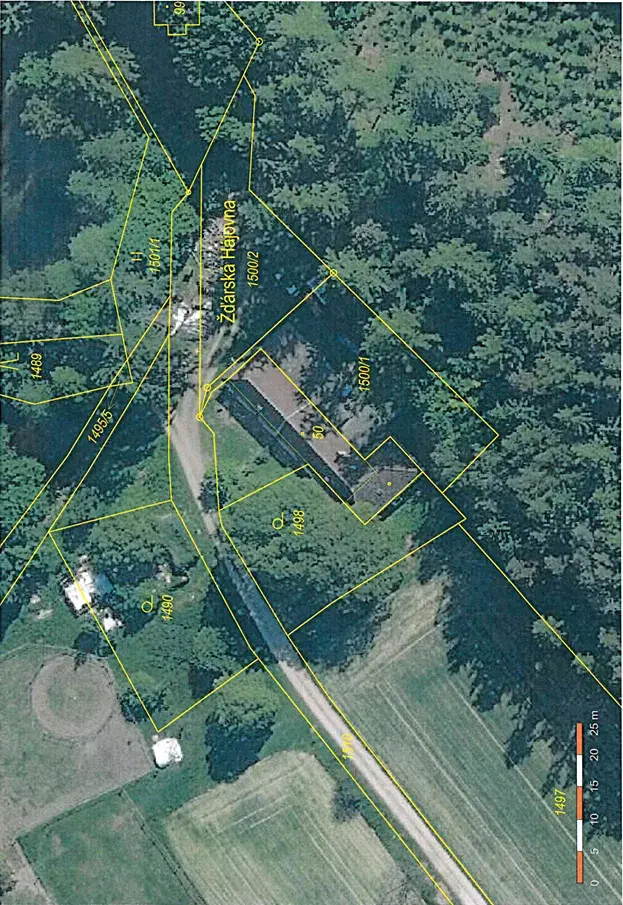 Jedná se o objekt hájovny vybudované cca v roce 1860 na okraji lesního komplexu, je tvořen obytnou a hospodářskou částí. Jedná se podsklepený rodinný dům s jednou bytovou jednotkou 3+1, součástí jsou nebytové prostory - stodola, sklad, garáž, nezastavěné podkroví. Objekt se nachází na samotě cca 1,4 km od obce Pluhův Žďár a je přístupný ze zpevněné účelové komunikace LČR - kat. 2L. Součástí pozemku p.č. 1500/1 jsou drobné jednoduché stavby - sklad, dřevník. Objekt je pronajat na dobu neurčitou. Na části pozemků p.č. st. 50, 1498 a 1500/1 je uzavřena pachtovní smlouva, a to na dobu určitou s tím že pachtovní smlouva skončí 30 dnem po převodu vlastnického práva na třetí osobu.