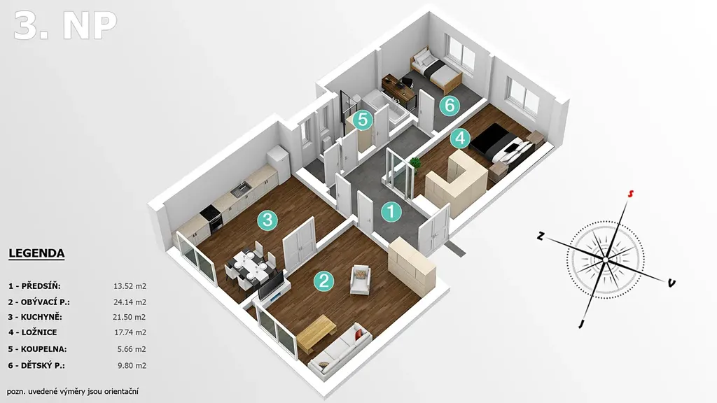 - vysoké stropy, nová dřevěná špaletová okna s trojsklem