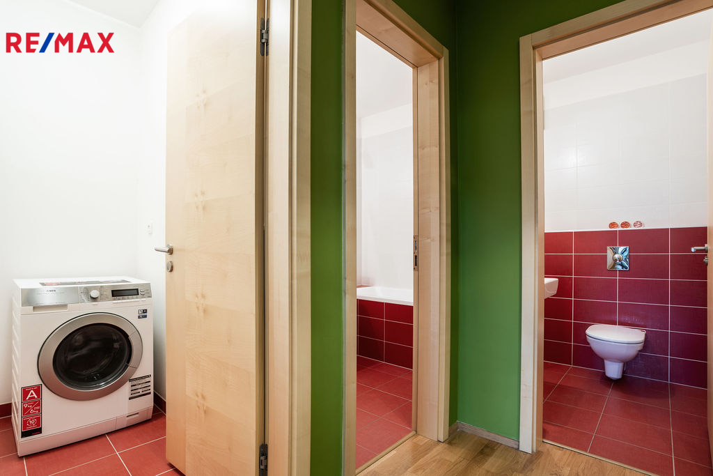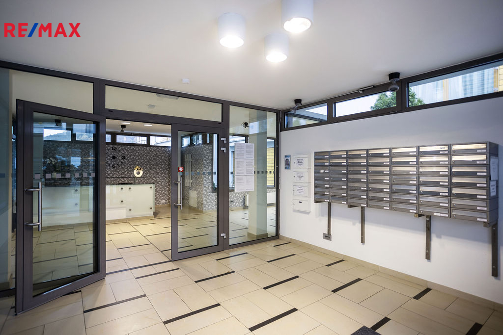 Společné prostory domu jsou pečlivě udržované. K dispozici je společná kočárkárna a správa domu funguje dobře.