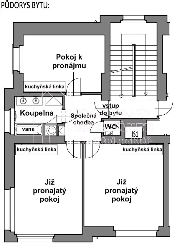 Ke dlouhodobému pronájmu Vám je k dispozici tento samostatný pokoj s kuchyňským koutem, Praha 8-Kobylisy, ul. Střelničná, 1 minutu chůze od metra C-Ládví.