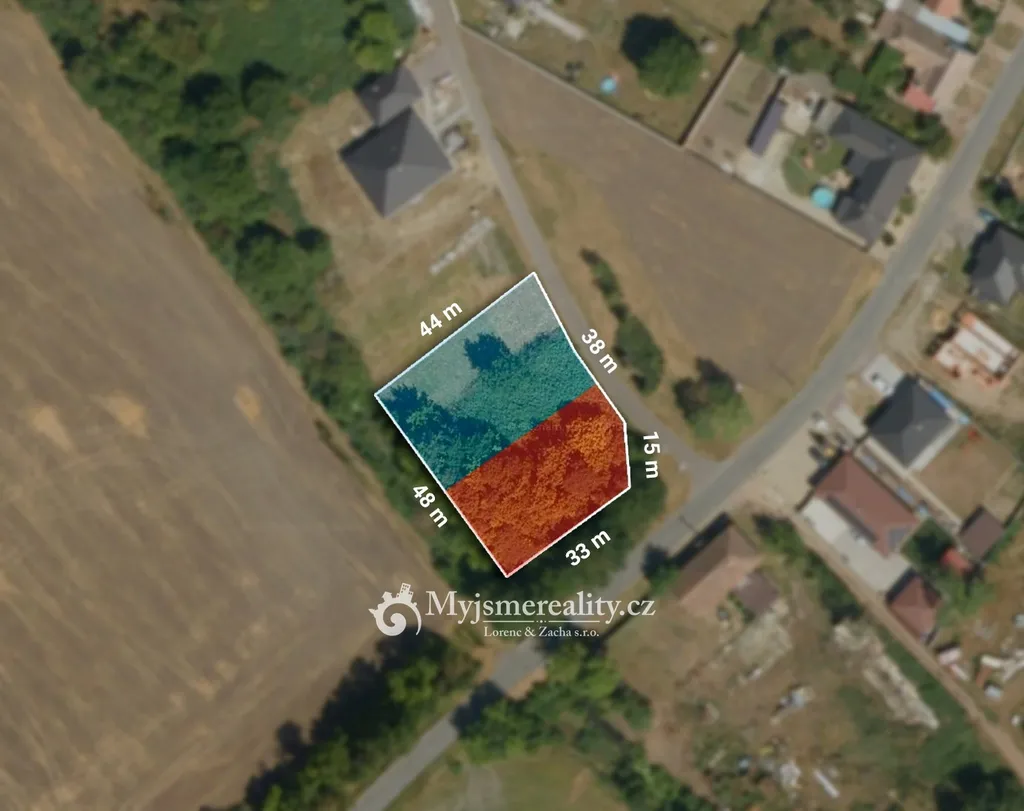 Pozemek je možné rozdělit na dva menší pozemky o výměře cca 1000 m2 a rozměrech cca 24 x 44 metrů.