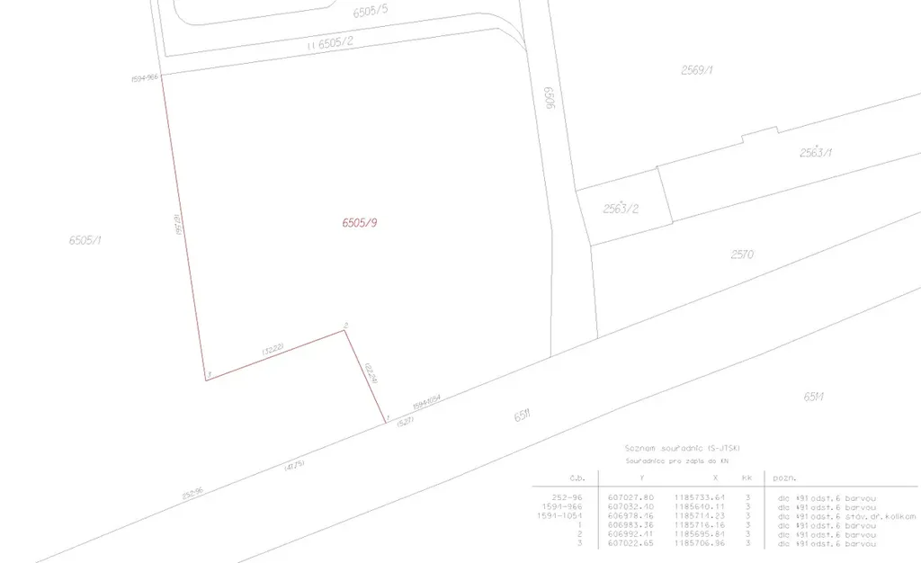 Pozemek p. č. 6505/9 – orná půda o výměře 5614 m2 vznikl oddělením na základě GP č. 3877-82/2025 z pozemku p.č. 6505/1 – orná půda o výměře 114 144 m2, který je zapsaný v katastru nemovitostí u Katastrálního úřadu pro Jihomoravský kraj, Katastrálního pracoviště Brno-venkov na LV č. 773, pro obec Pohořelice, k. ú. Pohořelice nad Jihlavou. Pozemek se nachází mimo zastavěné území, v platném územním plánu je veden v ploše Ap.p – pole. Dle vyjádření dopravního a energetického úřadu je na pozemku možnost umístění bateriového úložiště. Pozemek není zatížen právy třetích osob včetně nájemních nebo pachtovních vztahů s výjimkou věcného břemene zřizování a provozování vedení na pozemku p.č. 6505/1 zřízeného ve prospěch EG.D Holding, a.s., a to na základě smlouvy o zřízení věcného břemene ze dne 11.07.2016.