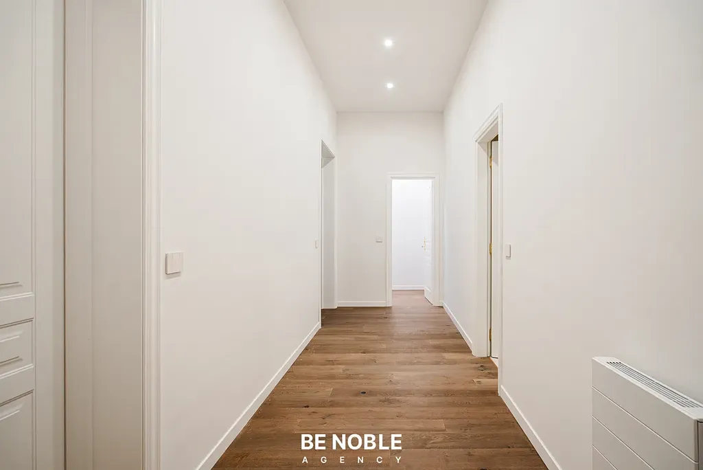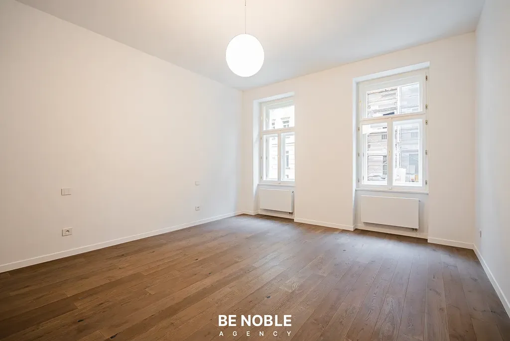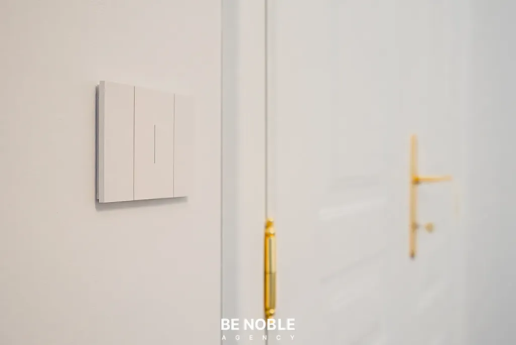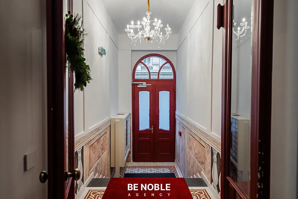 Dům i samotný byt jsou provedeny ve vysokém luxusním standardu. Výška stropů 3,4 m zajišťuje pocit vzdušnosti a velkorysého prostoru. Interiér nabízí řadu elegantních a nadstandardních prvků, jako jsou repliky historických oken a interiérových dveří, včetně několika dvoukřídlých, nádherné kovové kování osazené moderním magnetickým systémem, dřevěné podlahy v celém bytě, luxusní obklady a dlažby, výrazné červené vstupní dveře, digitální termostat pro ovládání vytápění, videotelefon a samozřejmě autenticky a luxusně zrekonstruované společné prostory domu.