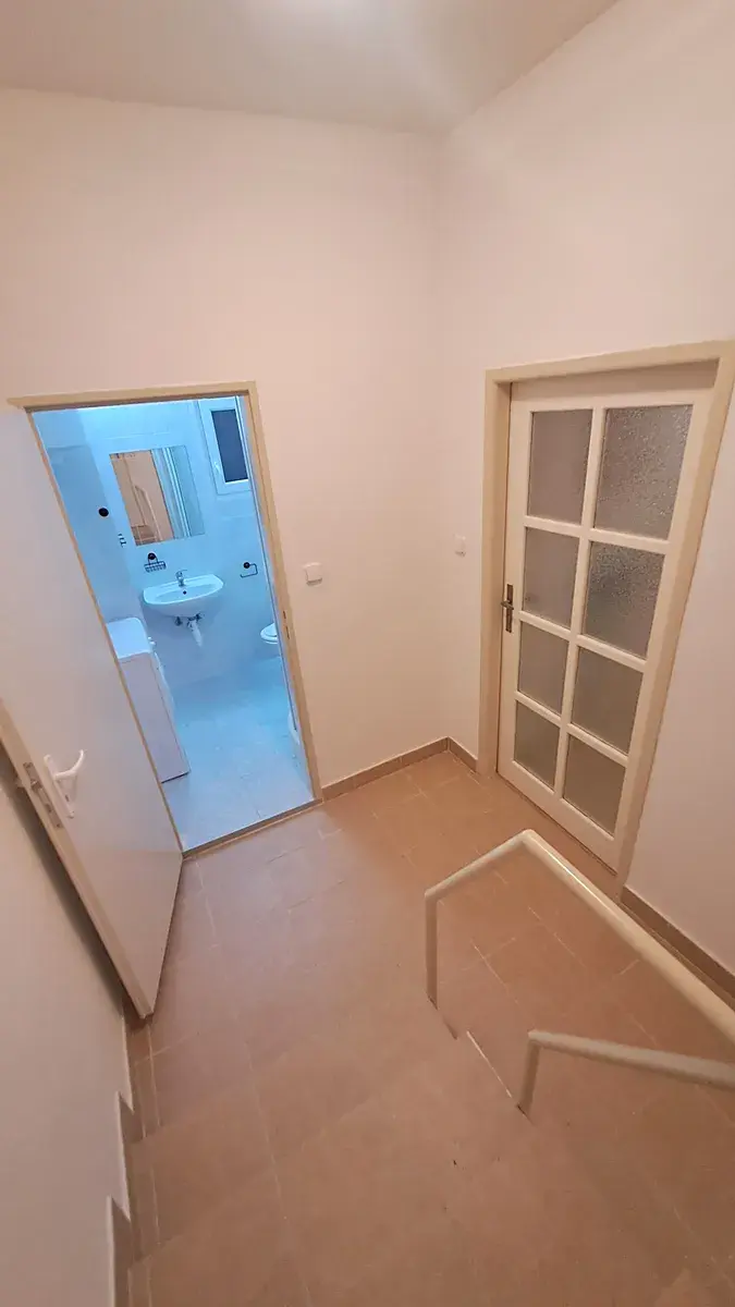 Nabízíme k pronájmu nově zrekonstruovaný , částečně zařízený byt ( kuchyňská linka ) 1+kk, 27m2. Je umístěn v suterénu cihlového domu, s plnohodnotným oknem orientovaným do vnitrobloku ( JZ) . Dispozičně je byt rozdělen na předsíň ( 4,9m2), pokoj s kuchyňským koutem (19m2) a koupelnou s WC (3m2) . Byt je po kompletní rekonstrukci . Vytápění je řešené el. kotlem, na míru zhotovená kuch. linka je osazena novými elektrospotřebiči (sklokeramická deska, digestoř a lednice). Jde o útulný , světlý byt ve vyhledávané lokalitě. Koupelna a WC jsou společné. K dispozici je sprchový kout, pračka a topný žebřík. Voda je řešena z el. bojleru, vytápění el. kotlem. K bytu patří velký sklep 3m2. Velkou výhodou je možnost užívat malý zelený vnitroblok. Lokalita má veškerou občanskou vybavenost. Pro více informací kontaktujte přímo makléře