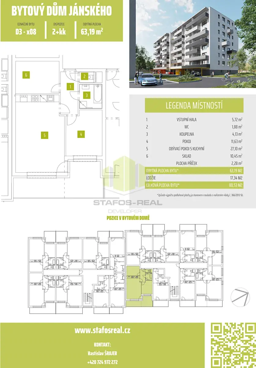 Začněte Vaší novou životní kapitolu bydlení a vychutnejte si radost z bydlení v zbrusu novém bytě. Prověřujeme evidenci exekucí, insolvencí a dluhů na zdravotním pojištění našich potenciálních nájemníků. Pro lepší představu o tomto bydlení vám doporučujeme shlédnout virtuální prohlídku, která vám také poskytne možnost změřit jakýkoliv rozměr tohoto bytu. Volné od listopadu/prosince 2025. Kompletní nabídku bytů v domě najdete na našich stránkách STAFOS-REAL.