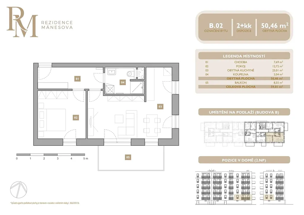 Součástí prodeje je nutnost zakoupení venkovního parkovacího stání, k bytu lze dále dokoupit sklepní kóji. Rezidence se nachází v klidné části města s kompletní občanskou vybaveností – obchody, školy, restaurace i zastávka veřejné dopravy jsou v docházkové vzdálenosti. Byty 2+kk kombinují kvalitní zpracování, příznivou cenu a moderní styl bydlení. Dokončení výstavby 12/2026.