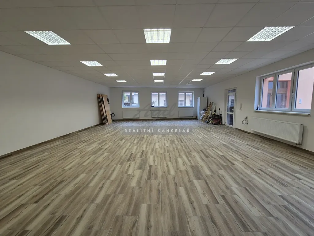 Chodba 15 m2, místnost 105 m2, kancelář 19 m2, WC s umyvadlem 8 m2 a 1x parkovací místo.