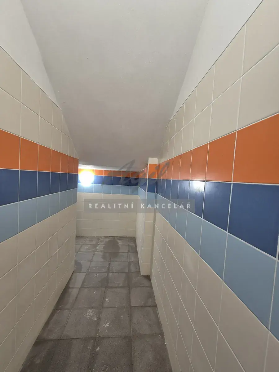 Chodba 5 m2, technická místnost 9 m2, místnost 105 m2, kuchyňka 12 m2, WC s předsíňkou 8 m2, kotelna 7 m2, průjezd a 1x parkovací místo.