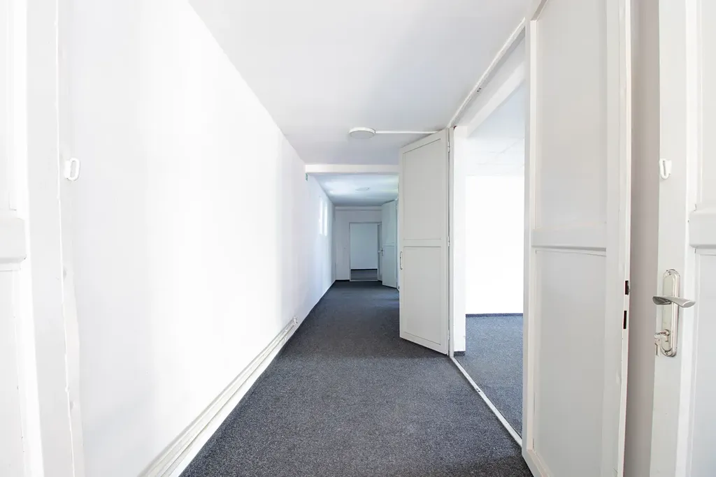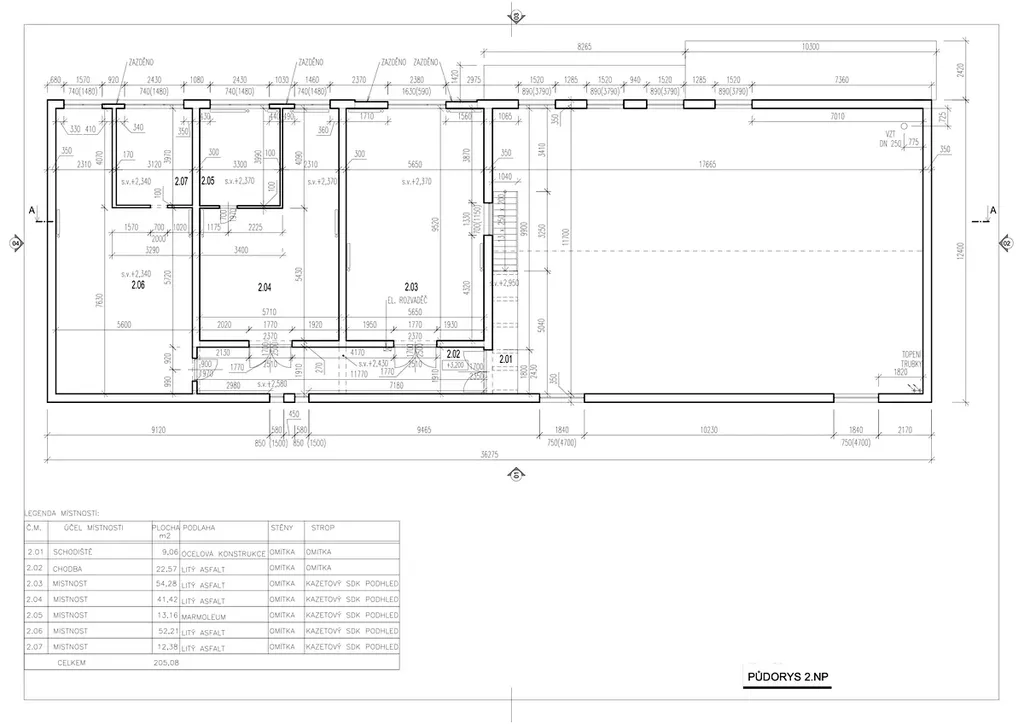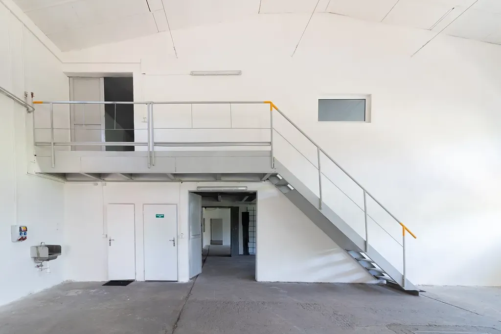 Z přízemí haly je po schodech přístup do 2.NP, které nabízí 205 m2 s 5 místnostmi pro lehčí skladování nebo office zónu - viz přiložený půdorys.