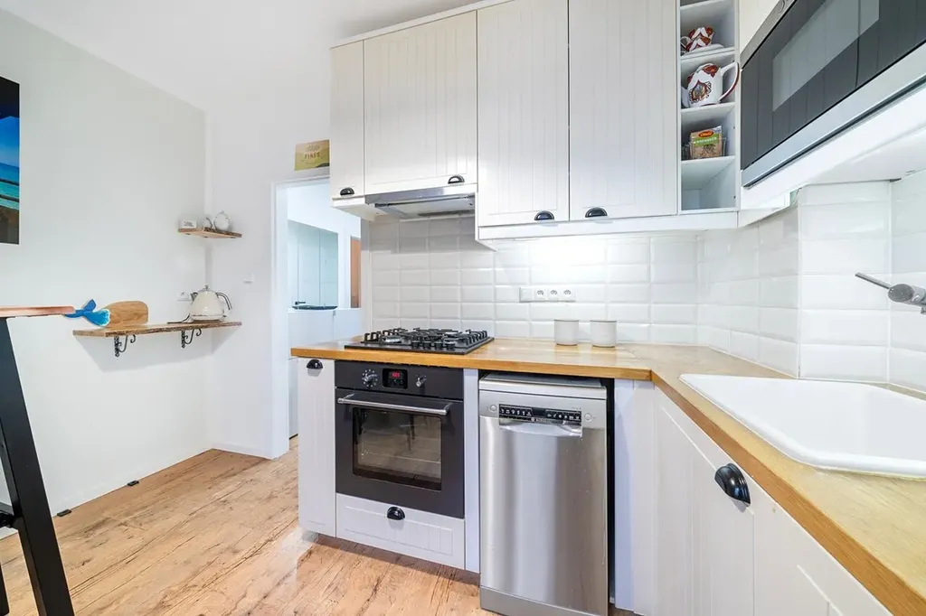 V ceně je veškeré vybavení: pračka, TV, závěsy, postel (bez matrace), kuchyňský stůl a židle, botník, vestavěné skříně, kuchyňská linka se spotřebiči (sporák, trouba, myčka,). Plastová okna, plovoucí podlahy, dlažba.