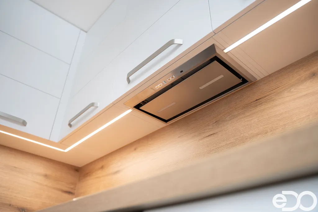 - světlý obývací pokoj s další moderní kuchyní na míru