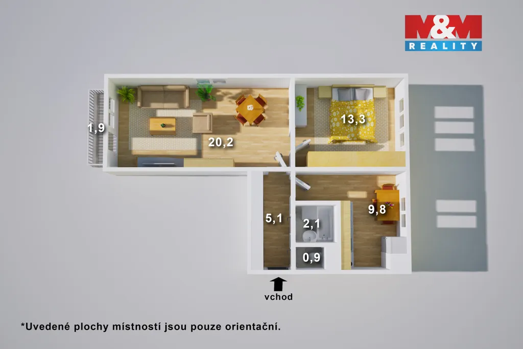 Nabízíme k prodeji byt 2+1 s balkónem, umístěný ve 3.nadzemním podlaží domu ve vyhledávané a klidné lokalitě Všebořice - Bukov. Byt je v původním stavu, což vám umožní provést rekonstrukci podle vašich představ a vytvořit si domov na míru. Byt disponuje dvěma průchozími pokoji, které lze lehkou přestavbou změnit na neprůchozí, dále koupelnou a toaletou. Součástí je také balkón, který je orientovaný do klidné části okolí a poskytuje tak příjemné místo k posezení nebo pěstování zeleně. Dům je zateplený, včetně tepelné izolace střechy, což zlepšuje tepelný komfort a snižuje provozní náklady. Sklepní prostory prošly rekonstrukcí a jsou čisté a suché. Umístění bytu nabízí příjemný výhled i dostatek přirozeného světla. Všebořice jsou oblíbenou lokalitou pro svou klidnou atmosféru, množství zeleně a výbornou občanskou vybavenost. V okolí se nachází obchody, školy, školky, lékařské služby, zastávky MHD i možnosti sportu a procházek.
