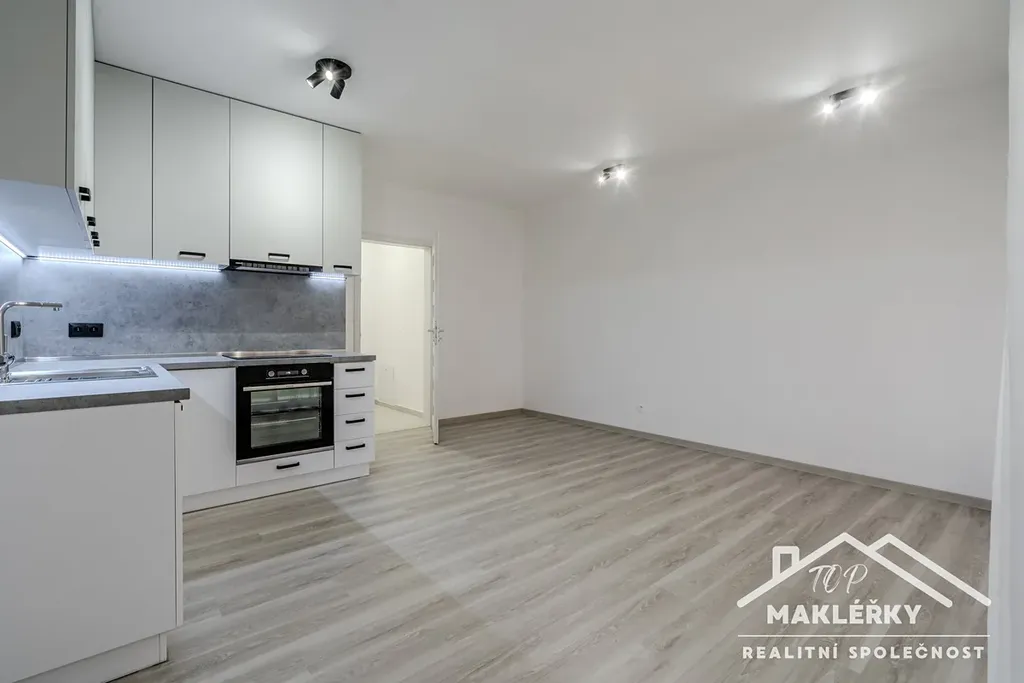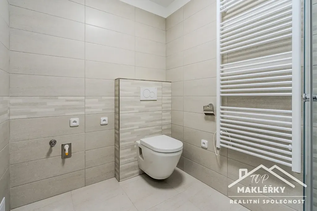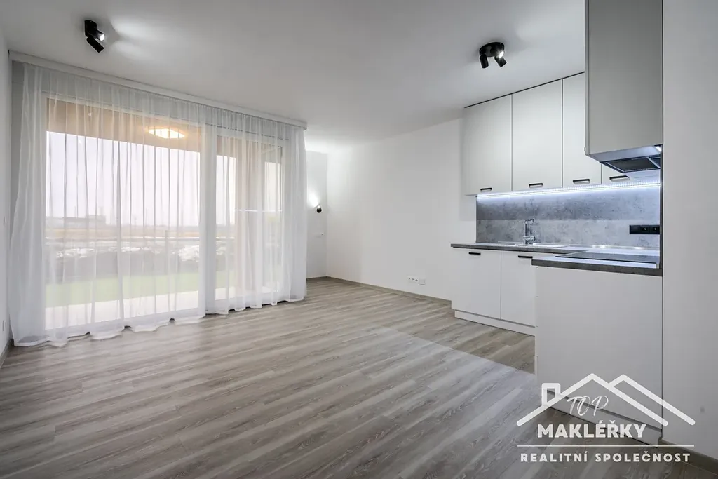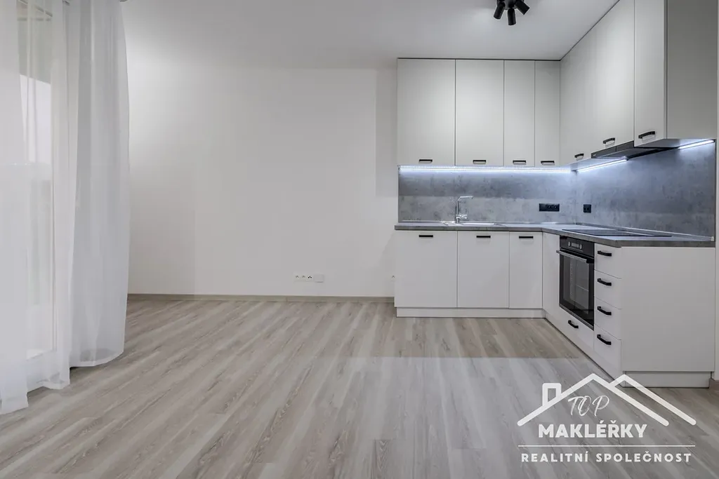 Bytová jednotka je zcela nová, nikdy neobývaná a připravena pro jednu, maximálně 2 osoby. Pro nájemce je připravena kuchyňská linka vybavena indukční deskou, trouba, myčka nádobí a kvalitní granitový dřez. V pokoji je položena plovoucí podlaha, v koupelně a chodbě dlažba. V koupelně umyvadlo, sprchový kout a toaleta, příprava pro pračku.