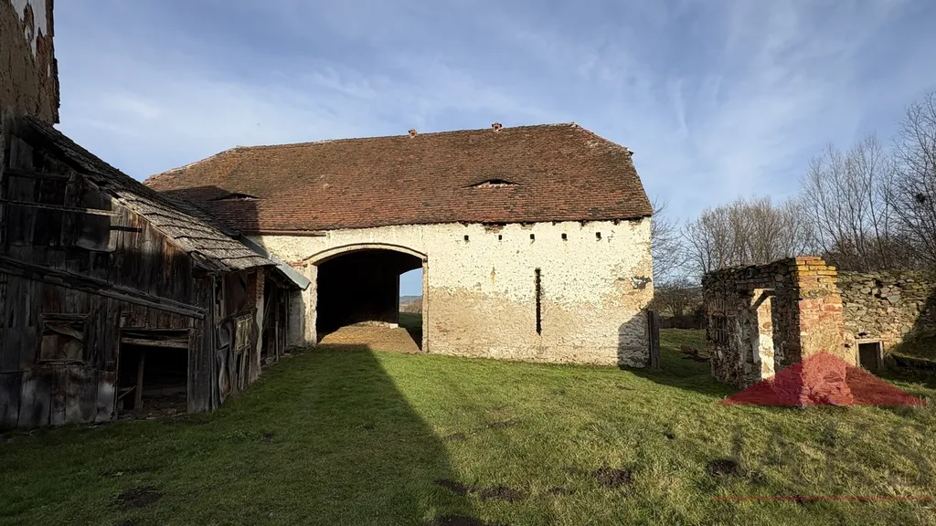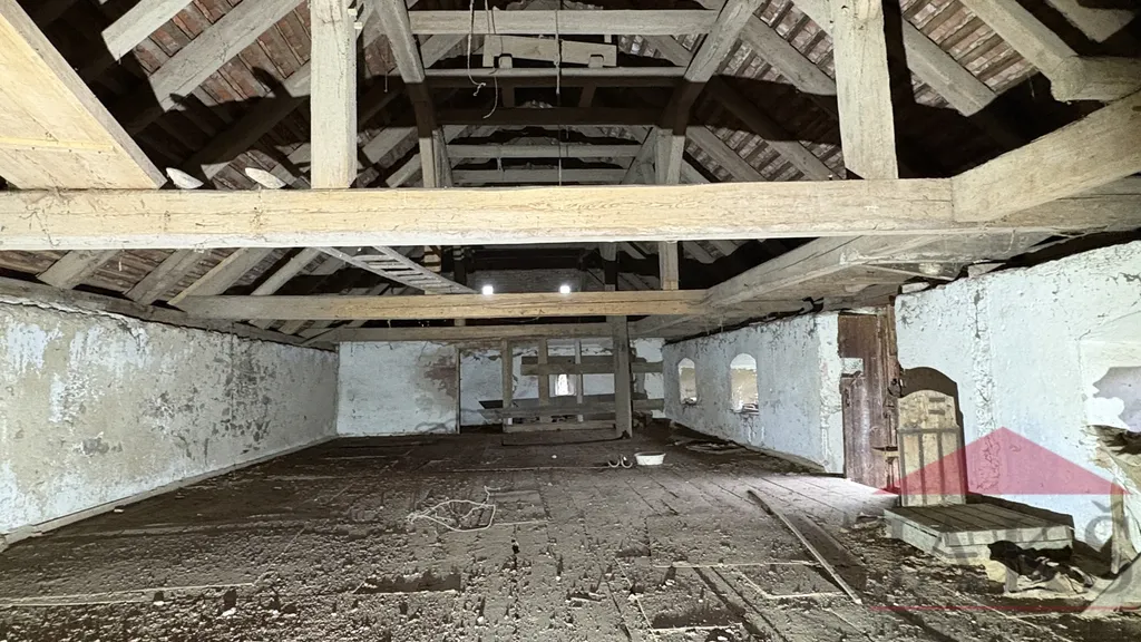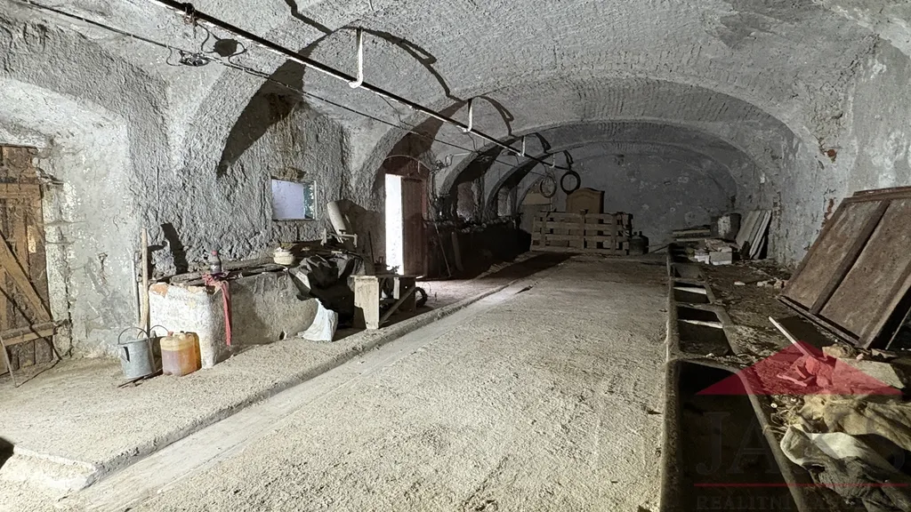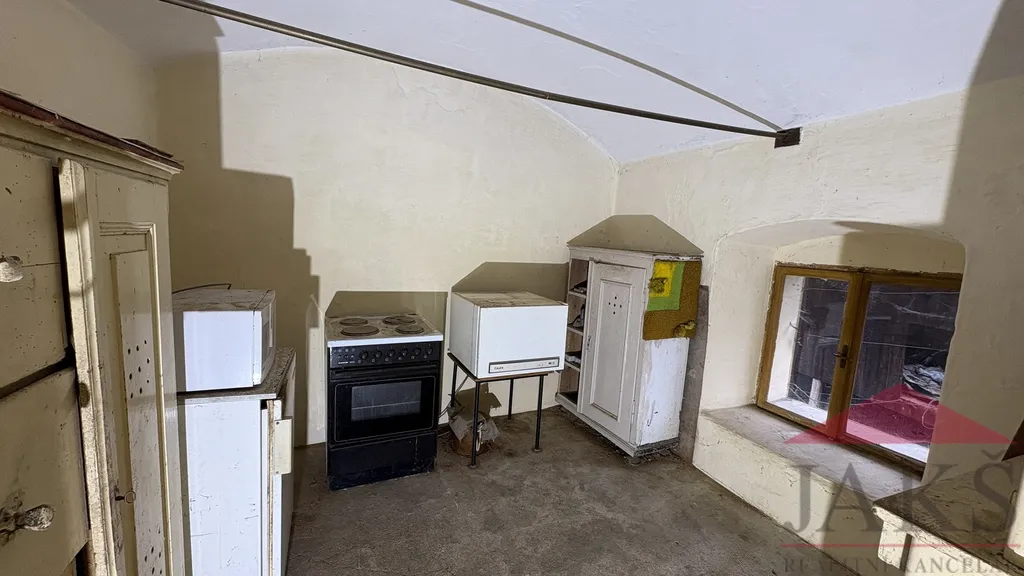 Popis: částečně podsklepeno: 3x sklep (nová přípojka obecního vodovodu) s klenbou; přízemí: vstupní veranda, chodba se schodištěm do podkroví, koupelna (vana, umyvadlo, kotel na T.P. a el. boiler), technická místnost (WC, vodárna), obytná kuchyň (kuch. linka, dřez, plynový sporák na P.B., sporák na T.P.) s jídelnou, komora s klenbou a 2x pokoj (bez podlah); podkroví: podesta, podkrovní pokoj a půda (vhodná k vestavbě).