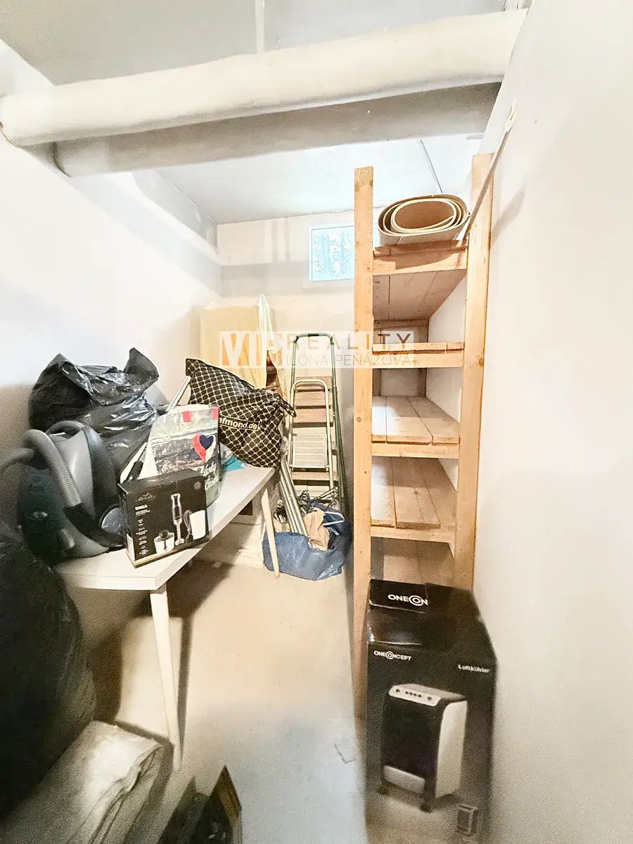 K bytu náleží sklepní kóje o výměře 4,58 m², ideální pro uložení sezónních věcí či sportovního vybavení.