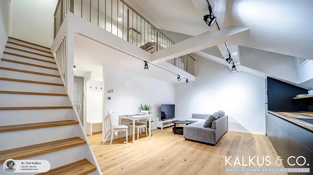 Byt právě prošel citlivou rekonstrukcí v nadstandardním provedení, které spojuje historický šarm s moderním komfortem.Velkorysé loftové stropy, otevřená galerie a světlá paleta materiálů dodávají interiéru vzdušnost, eleganci a klidnou nadčasovost. Každý detail byl promyšlen — od dřevěných podlah a úložného prostoru pod schodištěm, po vestavěné skříně a kuchyň. Podlahové vytápění zajišťuje příjemné teplo, v létě pak komfort doplní klimatizace a elektricky ovládané stínění.