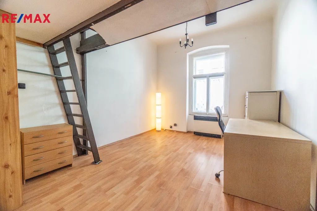 Dispozice bytu nabízí prostornou ložnici s vestavěným patrem na spaní, které šetří místo a vytváří další úložný prostor. Kuchyně je samostatná, s dostatkem denního světla. Byt je ideální jak pro jednotlivce, tak pro pár.