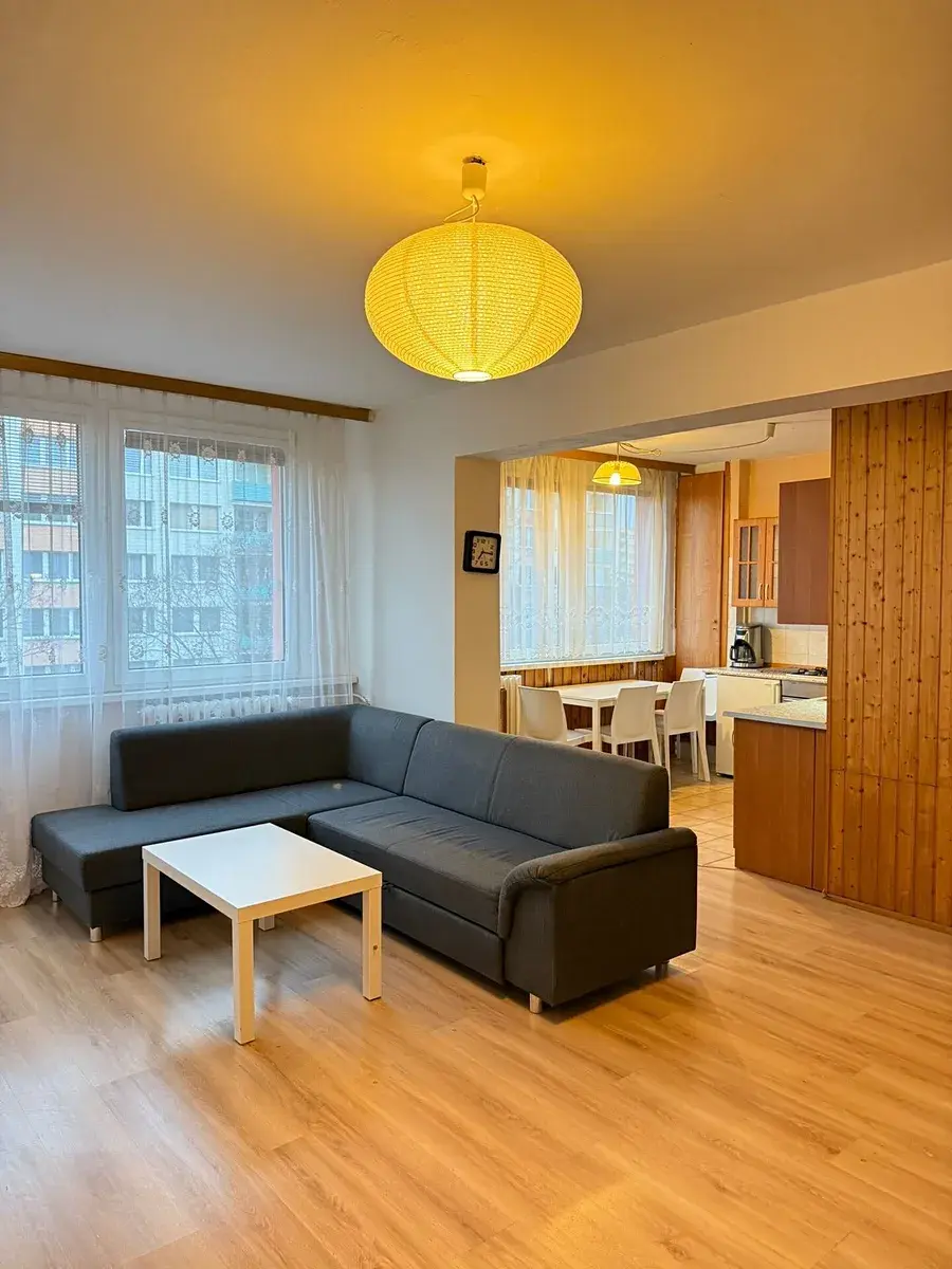 Byt se nabízí vybavený dle fotografií a je připraven k okamžitému pohodlnému bydlení. Kuchyně je vybavena lednicí, troubou, plynovým sporákem a dostatkem úložných prostor. Obývací pokoj je prostorný, světlý a vzdušný, ideální pro rodinné bydlení i relaxaci. Ložnice a další dva samostatné pokoje poskytují dostatek prostoru pro postele, skříně, pracovní kout i další nábytek, takže byt je vhodný jak pro rodinu s dětmi, tak i pro vícečlennou domácnost.