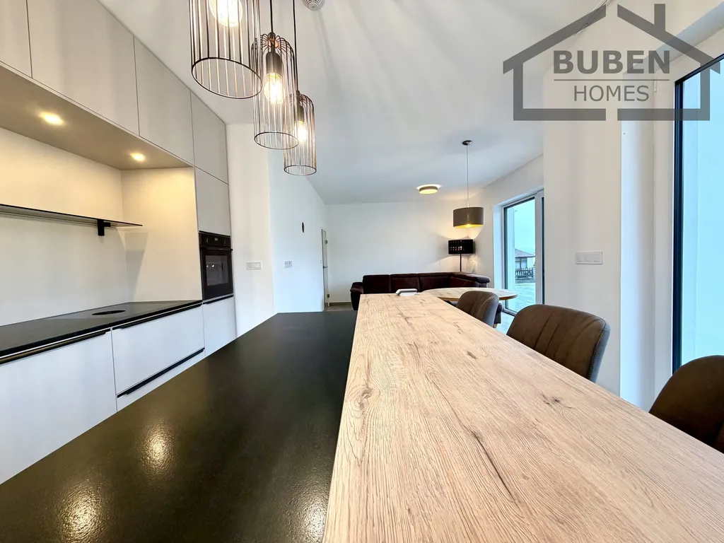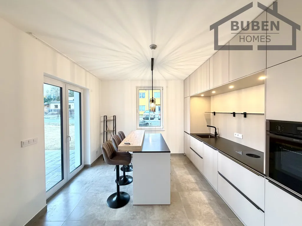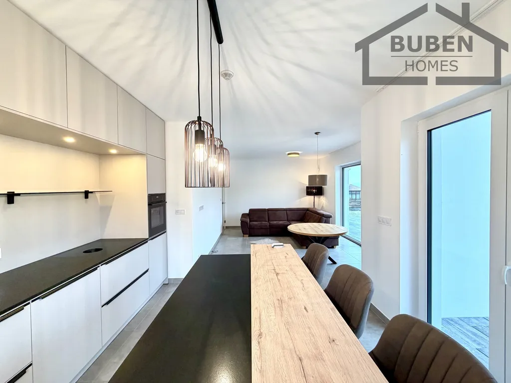 V ceně je zahrnuta nadstandardní kuchyňská linka včetně vestavěných spotřebičů (sklokeramická varná deska s digestoří, horkovzdušná trouba, myčka, lednice s mrazákem) a kompletní vybavení domu viz foto.