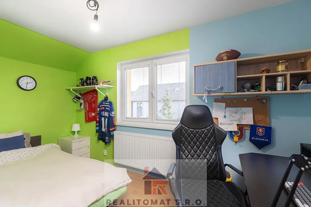 Podlahy a okna: V pokojích plovoucí laminátová podlaha, v předsíni a koupelnách keramická dlažba. Okna mají izolační plastová dvojskla a jsou na nich instalovány žaluzie.