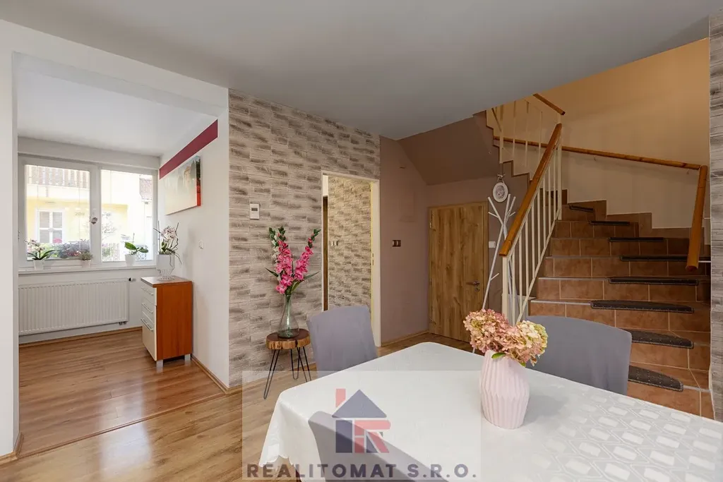 Nabízím k pronájmu příjemný dvoupodlažní rodinný dům 4+kk o celkové podlahové ploše 121 m² s garáží, terasou 12 m2, prostornou půdou 40 m2 a k tomu ještě dvě parkovací stání na pozemku. To vše jen pár minut za Prahou.