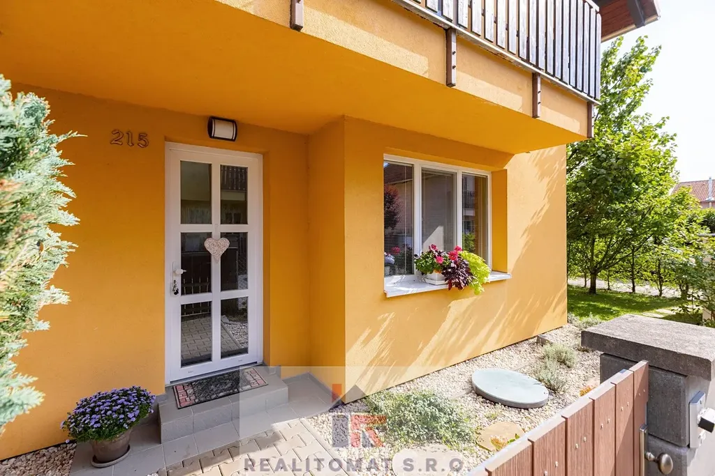 1. nadzemní podlaží: Zádveří s vestavěnou skříní, koupelna se sprchovým koutem a WC, kuchyňský kout vybavený vestavnými spotřebiči, obývací pokoj s přímým vstupem na terasu do udržované zahrady o velikosti 453 m2. Na pozemku se nachází vydlážděné venkovní parkovací stání pro další 2 auta, celkem 36 m2.