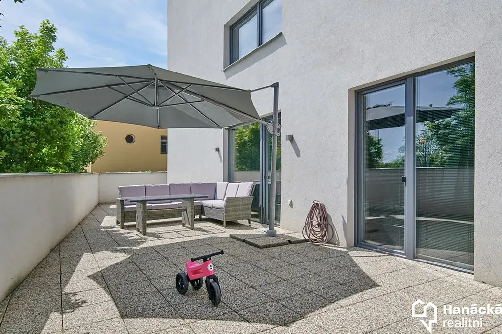 Naprostou raritou této nabídky je však prostorná terasa o úctyhodné výměře 80 m². Takový venkovní prostor je v městské zástavbě skutečným luxusem. Na terasu se pohodlně dostanete z kuchyně, obývacího pokoje i jedné z ložnic, takže se stává přirozeným prodloužením bytu – ideálním místem pro ranní kávu, rodinné večeře pod širým nebem či klidný odpočinek po náročném dni.