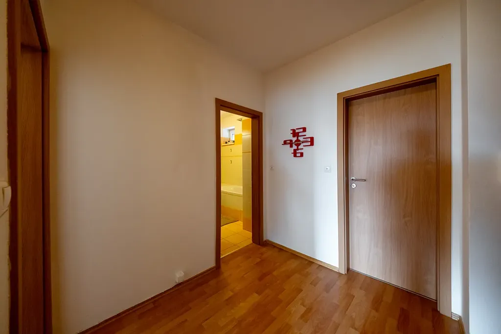 Ve společných prostorách rezidence se nachází sušárna, kolárna a dětské hřiště přímo uvnitř oploceného areálu. Jedná se tedy o výborné bydlení pro rodiny s dětmi. K bytu je také přidružené soukromé parkovací místo uvnitř uzavřeného areálu.