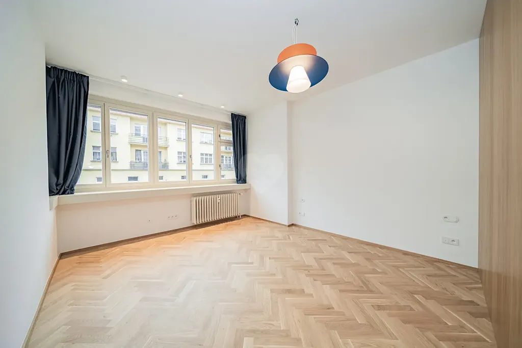 Obývací pokoj tvoří centrální část bytu a je propojen jak s ložnicí, tak i s dalším pokojem resp. s jídelnou. Designovou originalitu podtrhuje nová kuchyňská linka s vestavěnými spotřebiči zn. Miele. Lednice s mrazákem, myčka nádobí, digestoř, sklokeramická varná deska, el. trouba. Moderní koupelna s "walk-in" sprchovým koutem a podomítkovými bateriemi, místem pro pračku i sušičku, dvojitým umyvadlem a závěsným WC. Sanita a zařizovací předměty zn. Laufen, Grohe, Geberit, Optima. Ve vstupní hale a všech obytných místnostech jsou položeny nové masivní dubové parkety, dále pak velkoformátová dlažba. Jak je patrné z přiloženého půdorysu, součástí bytu je i šatna s dostatkem úložných prostor, komora a další samostatné WC. Byt lze po dohodě vybavit nábytkem dle návrhu architekta (není zahrnuto v ceně). Centrální etážové vytápění i ohřev vody bez nutnosti obsluhy a údržby kotle. Byt se nachází ve 3. patře (výtah) udržovaného funkcionalistického činžovního domu a je orientován směrem k jihu do ulice Milady Horákové, je tak velmi slunný a světlý. Naprostý komfort zajišťují nová dřevěná okna s izolačními trojskly. Unikátní lokalita - Letná je právem považována za jednu z nejžádanějších pražských čtvrtí. Spojuje klidné rezidenční bydlení, živou komunitní atmosféru a mimořádnou občanskou vybavenost. V okolí najdete rozlehlé parky Stromovka a Letenské sady – ideální pro sport i odpočinek, kulturní centra jako Bio OKO, La Fabrika, Národní technické muzeum nebo Národní galerie. Školy, školky, obchody, typické letenské kavárny a restaurace, lékařskou péči a další služby - vše máte opravdu na dosah. Skvělá dopravní dostupnost - tramvajová zastávka Kamenická jen 50 m od domu. Tramvaje č. 1, 8, 12, 25, 26, 91, 96, stanice metra Hradčanská (A) a Vltavská (C) do 10 minut. Historické centrum města pár minut od domu. Byt je ideální pro 2-3 osoby a je ihned k nastěhování. Vzhledem k nesporné hodnotě nemovitosti požaduje majitel vratnou jistotu (kauci) ve výši 80.000 Kč. Provize RK měsíční nájemné + DPH. Nový nájemce bude prvním obyvatelem po právě dokončené rekonstrukci. Hledáte-li výjimečné bydlení v noblesní čtvrti s duší a kompletní vybaveností na dosah, tento byt je pro vás ideální volbou. Neváhejte mě kontaktovat pro více informací či domluvení osobní prohlídky.