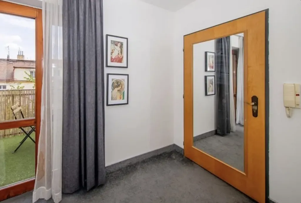 K dispozici nájemci je také společná zahrada s terasou a pergolou ve vnitrobloku, která nabízí příjemné soukromí a prostor k odpočinku.
