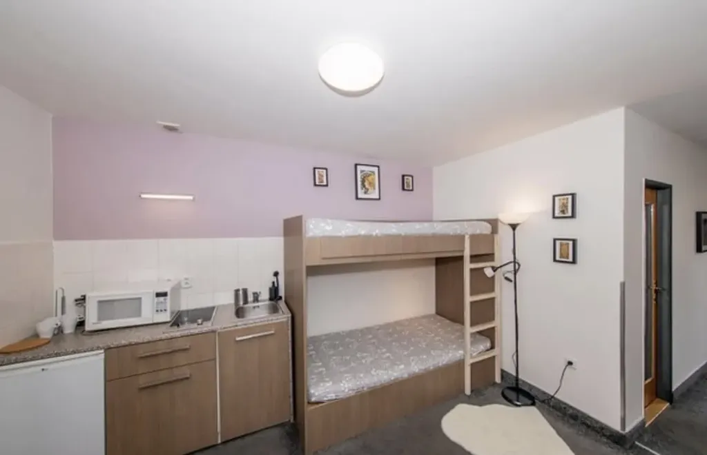 Byt se skládá z obývacího pokoje s kuchyní, ložnice, balkonu, koupelny a WC. Byt je plně vybavený viz foto.