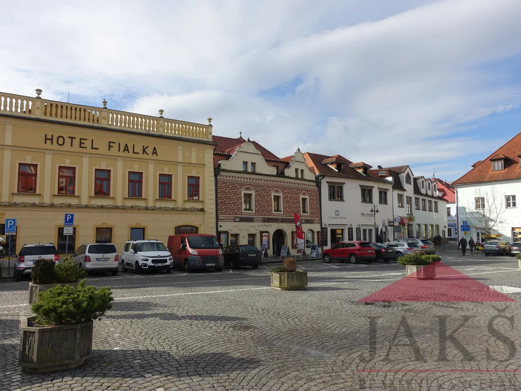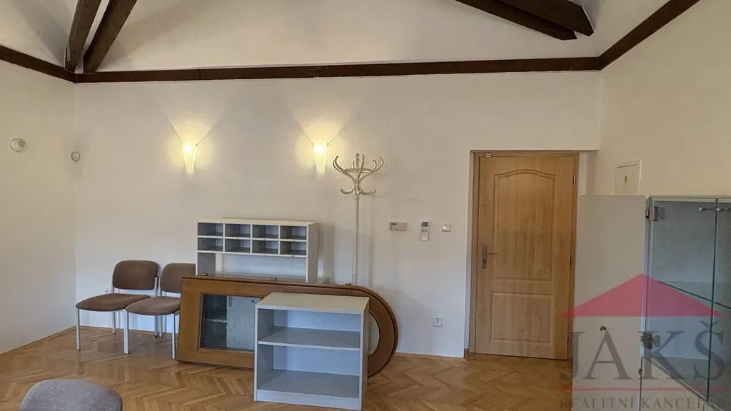 Popis: vstup z náměstí, společné schodiště do 3.NP, WC s umyvadlem přístupné z chodby, samostatná částečně zařízená kancelář/provozovna 21,9 m2 s kuchyňkou (dřez s teplou vodou - průtokový ohřívač).
