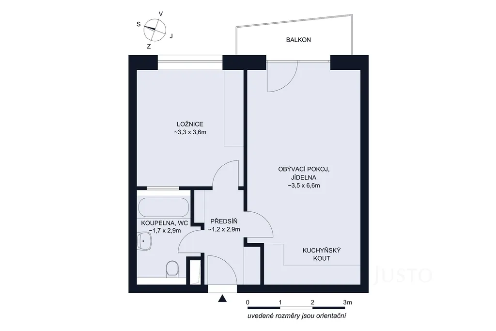 Byt se nachází ve 2. patře (3. nadzemním podlaží) zděného bytového domu, který byl zkolaudovaný v roce 2006. Okna a balkon (cca 3,4 m²) jsou orientovány na východ. K bytu dále náleží prostorný sklep (cca 3,1 m²) ve zvýšeném přízemí a k uložení kol můžete využít také společnou kolárnu.