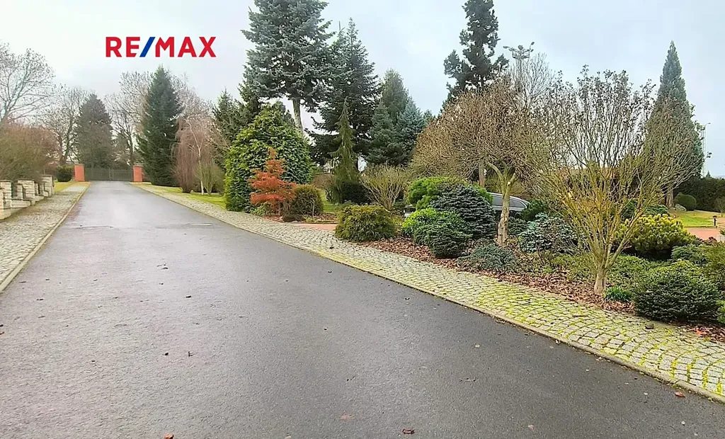 Při vjezdu do areálu otevřete vstupní bránu pomocí dálkového ovládání – vstup jen pro obyvatele, nebo také přímo z pohodlí domova prostřednictvím domácího telefonu. Poštovní schránka pro tento pozemek je umístěna u hlavního vjezdu. Přístupová asfaltová komunikace vede až k hranici pozemku.
