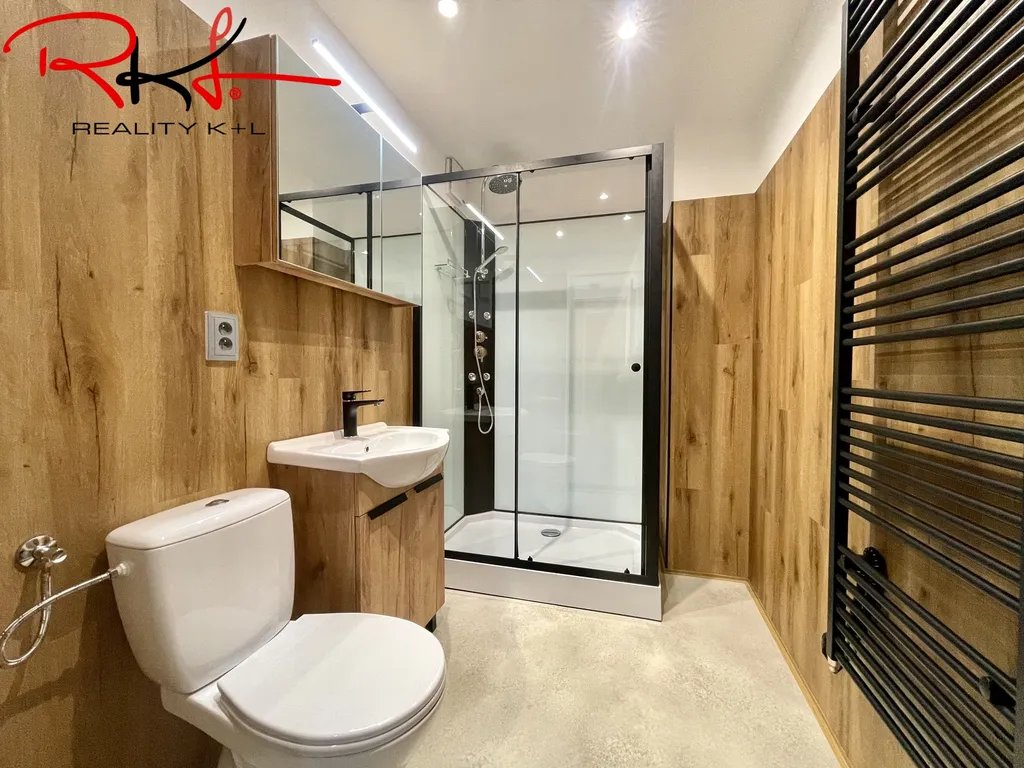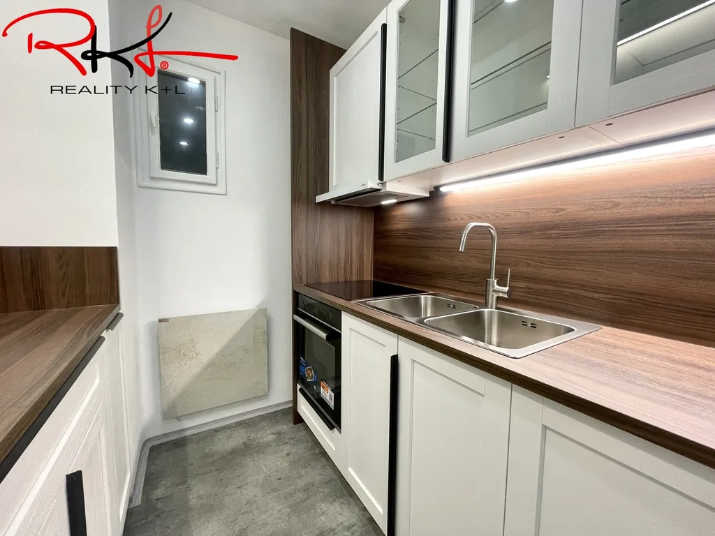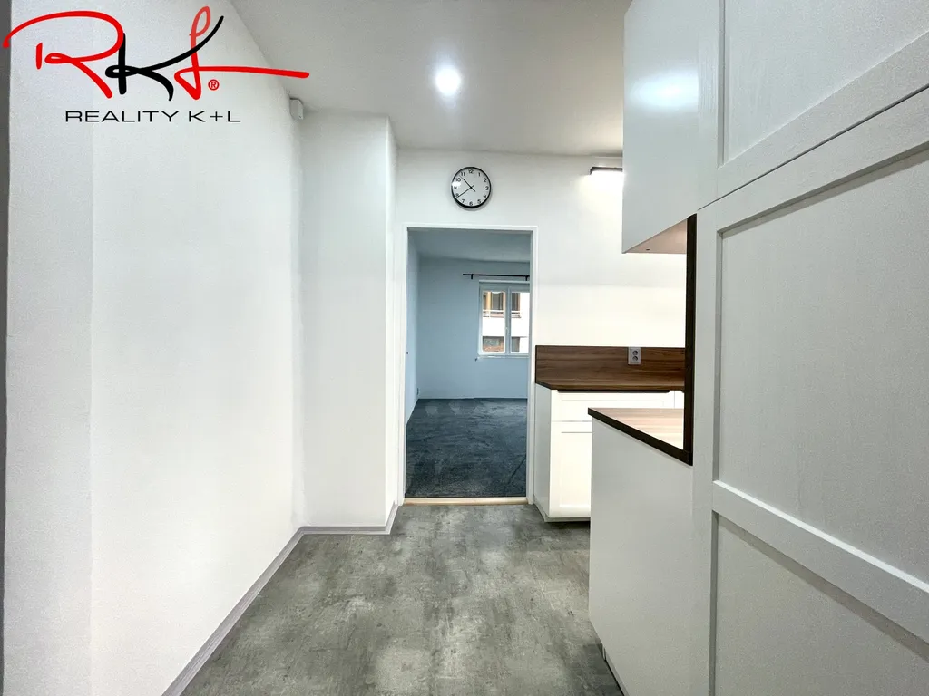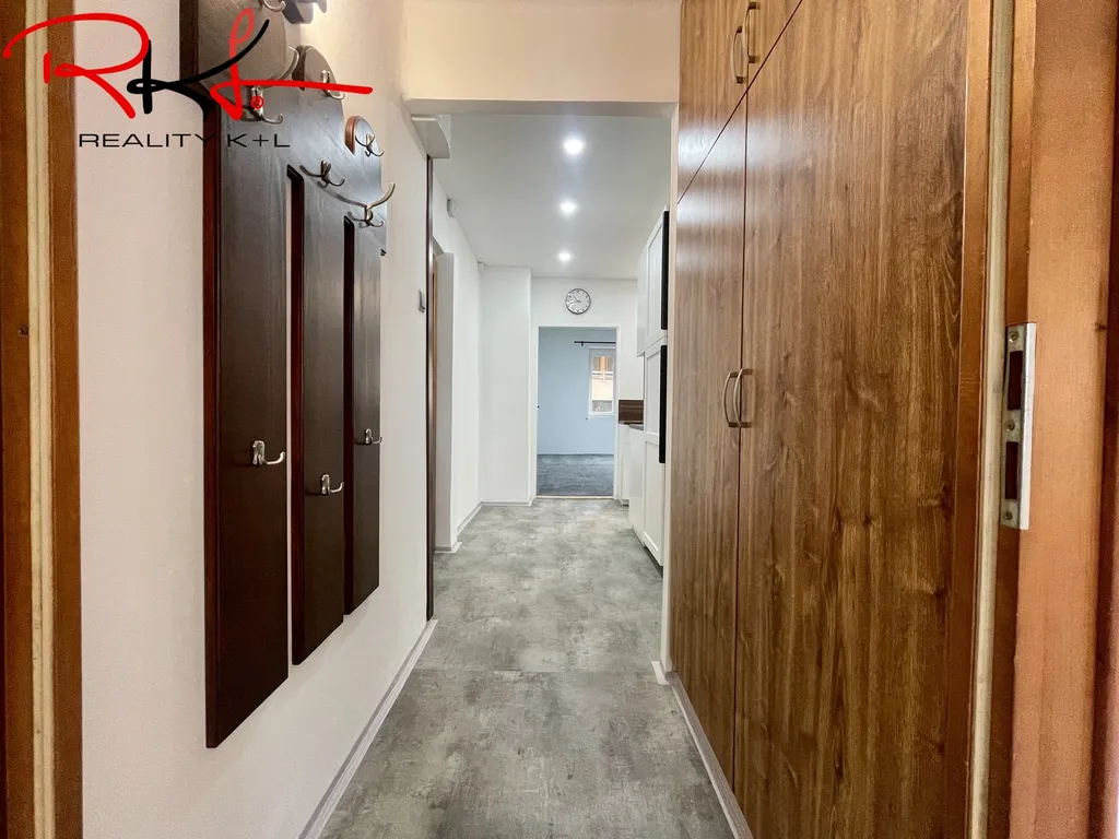 Vstupní chodba s vestavěnou skříní a vstupem do obou místností. Nová kuchyňská linka vybavena novými spotřebiči (trouba, varná deska, digestoř, příprava na pračku), dále prostorné pokoje s úložným prostorem, nová koupelna se sprchovým koutem a toaleta.