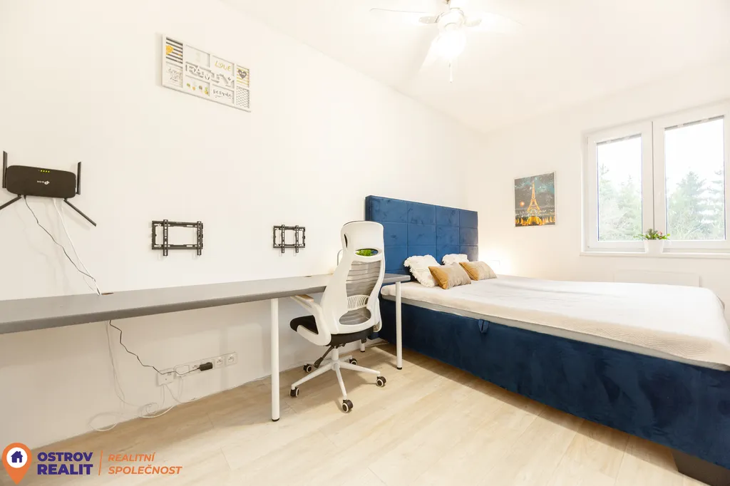 Již při vstupu do bytu vás přivítá kuchyně, která plynule navazuje na obývací pokoj – a právě tato propojená část je opravdovým srdcem domova. Díky otevřenému uspořádání působí prostor přirozeně vzdušně, světle a velmi příjemně. Dominantou kuchyně je praktická linka do tvaru U, která splní nároky i náročnějších kuchařů. Má spoustu pracovní plochy, dobře řešené úložné prostory a vybavena je vestavěnou myčkou, indukční deskou a nechybí ani velká samostatné stojící lednice, která v bytě zůstává. Atmosféru celého prostoru navíc umocňuje krb umístěný u vstupních dveří – ideální na zimní večery, kdy chcete teplo i útulnou pohodu. Z obývacího pokoje vede vstup na velký balkon, který sdílí i dětský pokoj. Ranní káva, víkendový brunch nebo jen chvilka klidu s výhledem – tohle místo si rychle oblíbíte. Z chodby pak vstoupíte do dvou neprůchozích pokojů – útulné ložnice a světlého dětského pokoje. Obě místnosti jsou dobře oddělené od společné části a poskytují tak nerušené soukromí. Koupelna je vybavena vanou, WC a zůstává zde také pračka, což vám ušetří další investici. A aby byl provoz domácnosti opravdu pohodlný, nechybí ani praktická šatna, která přináší tolik potřebný úložný prostor. Celý byt působí promyšleně, svěže a nabízí příjemnou kombinaci otevřeného bydlení a soukromé zóny – přesně tak, jak si to mnoho rodin přeje.