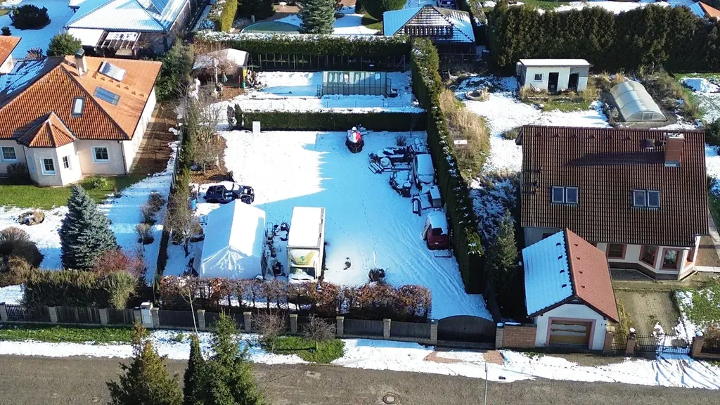 Inženýrské sítě – vlastní přípojka elektřiny (osazeno elektroměrem), ostatní sítě – plyn, kanalizace a vodovod v přilehlé komunikaci. Na pozemku se dále nalézá vrtaná studna (30 m). Příjezdová zpevněná komunikace na hranici pozemku. Vstup na pozemek zajišťují elektricky ovládaná vrata.