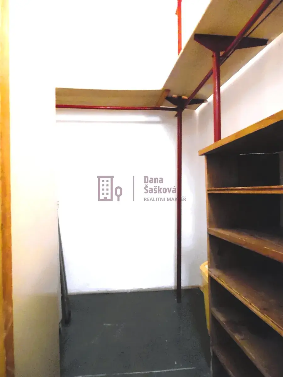 Byt je vybavený kuchyňskou linkou s elektrickým sporákem a vestavěnými skříněmi v chodbě.